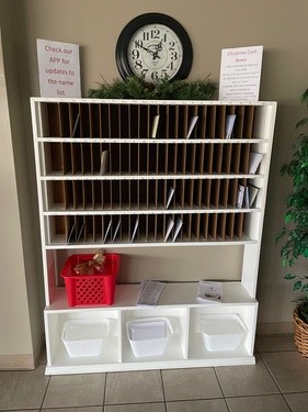 2. bring cards back to church and either place them in their numbered slot or in the basket below the mailbox slots.