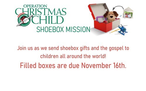 This year you will have the opportunity to serve with Samaritan’s Purse right here at our church. We are a local drop off location this year and we will need volunteers daily during collection week. This lets you get hands on in one of the first stops on the journey of these shoebox gifts. See Holly to sign up & ask questions.